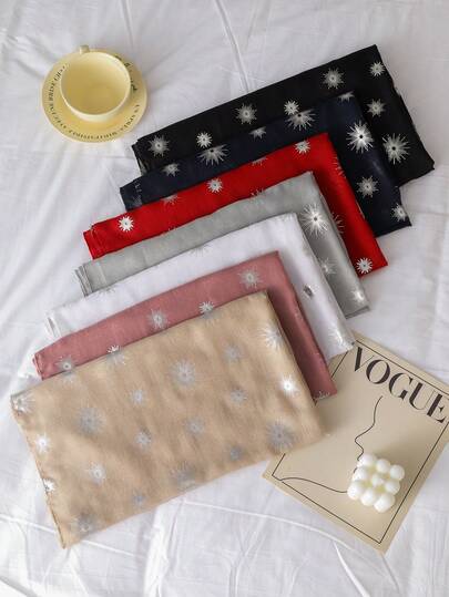 1pc New Solid Color Sunflower Hot Silver Sparkling Long Scarf Classic Multi Color Fashion Scarf Women's Spring/Summer UV Protective Scarf Daily Evening Dress Travel Beach Sunscreen Shawl And Holiday Gifts - Scarf - View 1