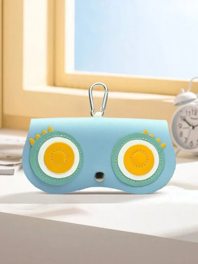 1pc New Style Portable Sunglasses Case, Cute Glasses Clip, Minimalist Eyeglass Pouch For Women,Car Sunglasses Case,PU Leather Cute Cartoon Eye Glasses Bag, Glasses Case Storage Protection, Sun Glasses Box, Portable Eyewear Pouch Decoration,Owl Glasses Bag - Blue - View 1