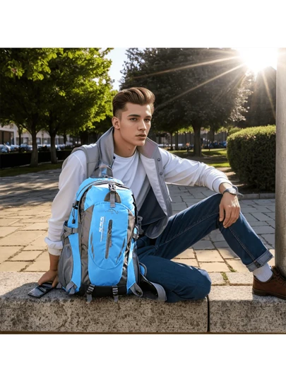 1pc New Travel Backpack, Leisure Sports Backpack, Outdoor Mountaineering Bag, Waterproof Nylon Multi-functional Large-capacity Backpack, Sports Style, Suitable For Men And Women, Mountaineering, Hiking, Sports And Fitness, Daily Use (with Waist Protector) - Blue - View 1