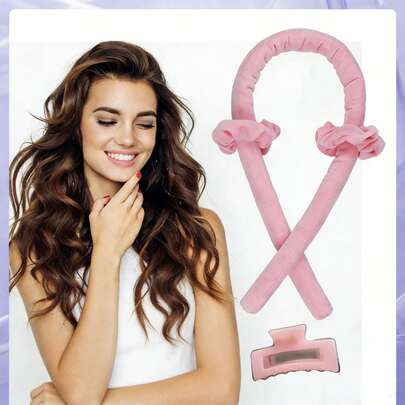 1pc No-Heat Hair Curler Set With Clips And Scrunchies. Reusable No-Heat Hair Curling Ribbon, Ribbon Hair Curler, No-Heat Hair Waves, DIY Loose Natural Soft Wavy Hairstyle Tool With Clips - Multicolor - View 1