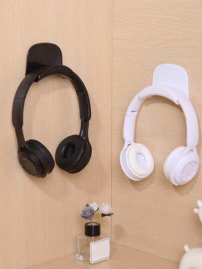 1pc Non-drilling Headphone Holder With Adhesive Hook, Space Saving Headset Storage Rack - Black - View 1