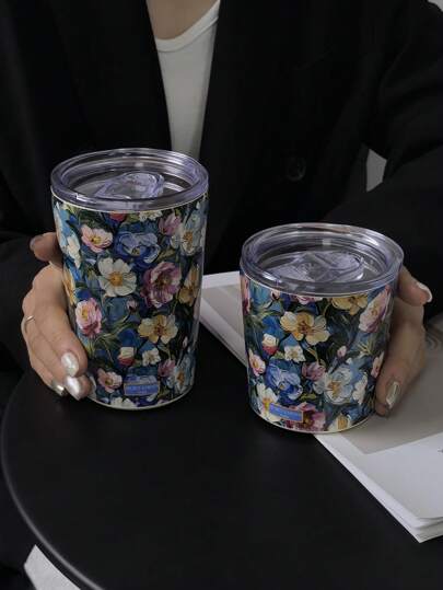 1pc Oil Painting Flower Design 280ml-350ml Double Wall Stainless Steel Insulated Tumbler, Coffee Cup, Water Bottle, Tea Cup, Flat Bottom, Suitable For Outdoor, Home, Office, Holiday Gift, Birthday Gift, Valentine's Day, Christmas, Mother's Day Back To School - Multicolor - View 10