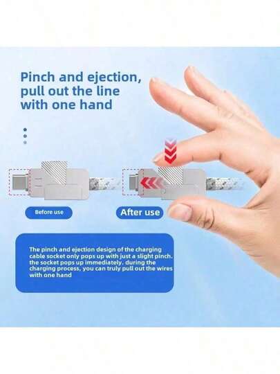1pc One Handed Press, Pop Out Cable, Mobile Car Data Cable Type-C Android Charging Cable, Flash Charging With Indicator Light, Creative New Model, 78.74-Inch Extended Version, Fast Charging Cable, Compact Charging Cable, Pop-Up Design, Cable, High-Speed Charging, TypeC Charger, Universal Cable, Technology Enthusiast, Mobile Tool, Catapult Unplugged Data Cable, Mobile TypeC Charging Compatible With Apple 16 17 - Multicolor - View 5