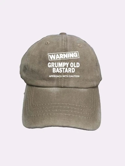 1pc Outdoor Warning Pattern Washed Retro Soft Top Sunshade Streetwear Denim Baseball Cap Sun Hat - Khaki - View 1