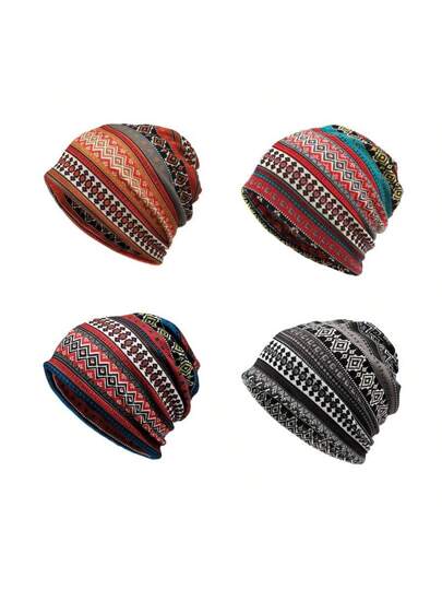 1pc/Pack  DD-Grey Men's And Women's Outdoor Sports Autumn And Winter Vintage Beanie Hats, Boho Style Warm Dual-Purpose Headscarf - Grey - View 1