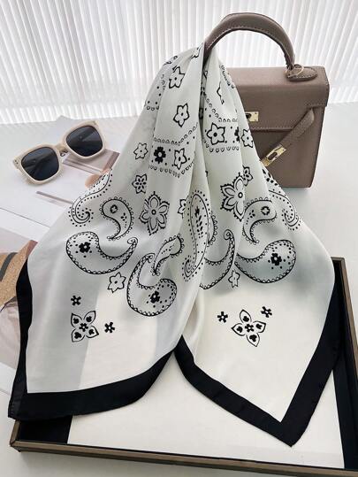 1pc Paisley Print Faux Silk Scarf - Multicolor - View 1