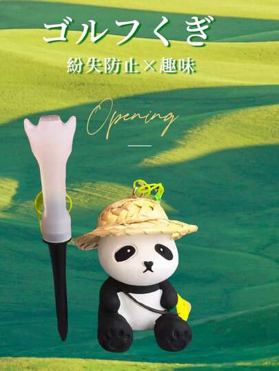 1pc Panda Golf Tee, Resin Panda Golf Tee, Rubber Tee Head, With Rope Tee Holder - Black and White - View 1