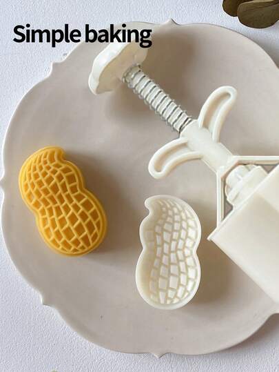 1pc Peanut & Persimmon Pattern Baking Mold, Birthday/Wedding/Holiday Baking Set, Mid-Autumn Green Bean Cake & Snow Skin Mooncake Mold, Afternoon Tea Cake Pressing Baking Tool, DIY Homemade Desserts & Asian Holiday Cooking, Dessert Stamp, Dessert Mold - Beige - View 1