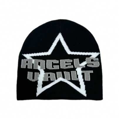 1pc Pentagram & Letter Intarsia Personalized Street Style Skull Cap, Unisex, Intarsia Knit Hat, Suitable For Casual Daily Wear, Outdoor Sports, Holiday Gift - Pentagram - View 1