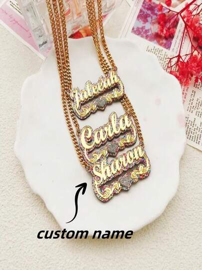 1pc Personalized Colorful Acrylic Pendant Necklace, Unique Multicolor Name Necklace With Mirror Gold Letter Charm, Classic Cute Style, Customized Jewelry For Women - Multicolor - View 3