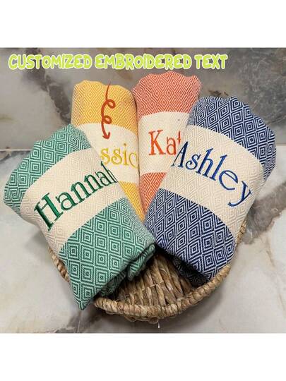 1pc Personalized Embroidered Sports Towel, Turkish Towel, Bridesmaid Gift, Customized Beach Towel, Bachelorette Gift, Housewarming Gift, Wedding Towel Gift, Outdoor Travel Towel, Her Gift, Personalized Gift, Thoughtful Gift For Teens - Multicolor - View 7