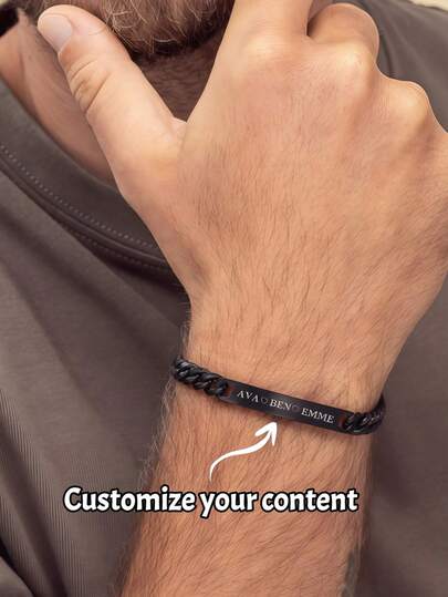 1pc Personalized Engraved Bracelet For Men, Couple Matching Bracelet Set, Laser Engraved Stainless Steel Bangle Bracelet, Romantic Customized Couple Bracelet, Black Gift For Boyfriend On Valentine's Day - Custom-carved Bracelet - View 3