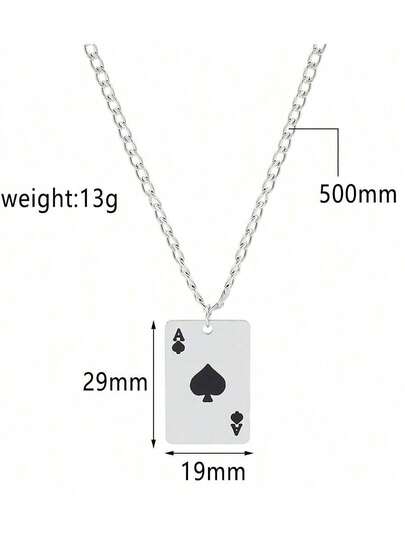 1pc Personalized & Stylish Stainless Steel Spade Poker Card Pendant Necklace Suitable For Daily Wear - Black and White - View 7