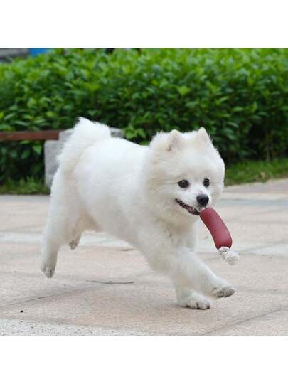1pc Pet Dog Toy Sausage Shaped Chew Rope, Safe Silicone Puppy Toy - Burgundy - View 1