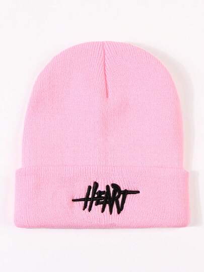 1pc Pink Knitted Hat With Embroidered Letter And Heart Design - Pink - View 1