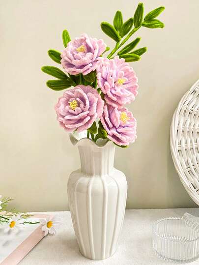 1pc Pink Peony Artificial Flower Bouquet, Elegant Fake Plant Floral Arrangement, Suitable For Wedding Decor, Garden, Vase Filler, Party, Home Centerpiece - Pink - View 7