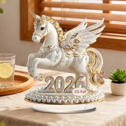 1pc Pink Pony 2026 Desktop Decor, With Pink, Gold, White Elegant Pony "2026" Design Pattern, Suitable For Room, Home, Office Desk Multi-Purpose, Best New Year Gift For Grandchildren, Gift For Horse Riding Enthusiasts - Colorful - View 1