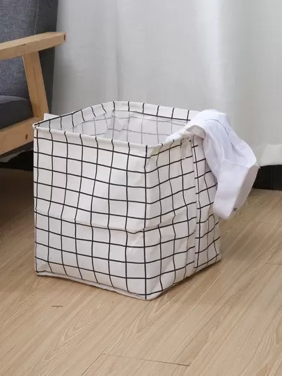 1pc Plaid Print Clothing Storage Box - White - View 1