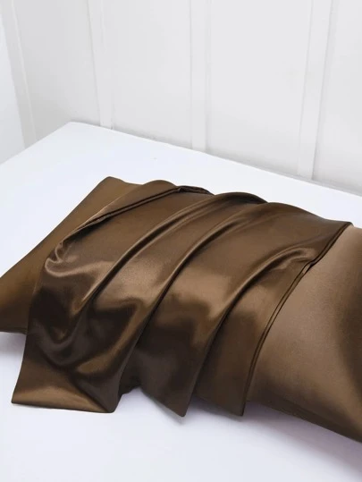 1pc Plain Satin Pillowcase Without Filler - Coffee Brown - View 1