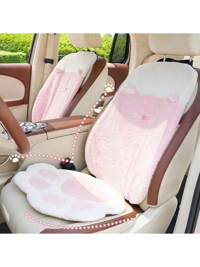 1pc Plush Seat Cushion, Winter Creative Cat Paw, Grid Car Warm And Anti Slip Seat Cushion, All Season Universal Car Seat Cushion - Multicolor - View 1