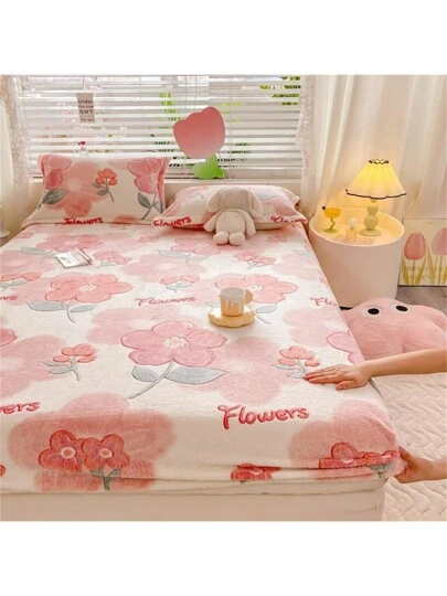 1pc Plush Thicken Bed Cover With Embossed Pattern - Multicolor - View 1