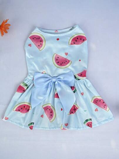 1pc Polyester Pet Dress With Big Red Lips & Bow Tie, Suitable For Small Pets Like Poodle & Teddy Bear, Not Suitable For Large Dogs - Blue - View 1