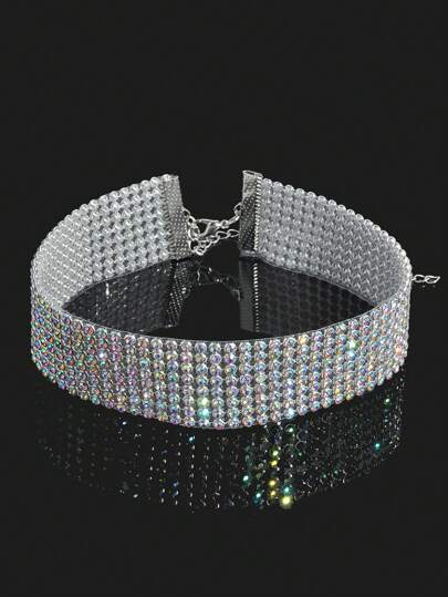 1pc Popular Sparkling Rhinestone Choker Necklace Suitable For Women For Wedding, Party And Daily Wear - Colorful - View 1