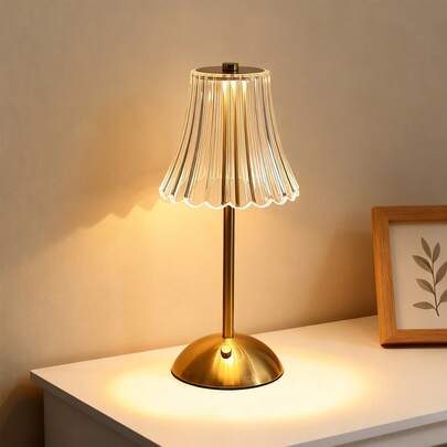 1pc Portable Crystal Desk Lamp, Fashionable Metal Table Lamp With Touch-Sensitive 3-Color Dimming, USB Rechargeable Bedside Lamp For Home Party Decor, Bedroom, Living Room, Office, Dining Room And Other Scenarios, Ideal Holiday & Birthday Gift - Gold - View 1