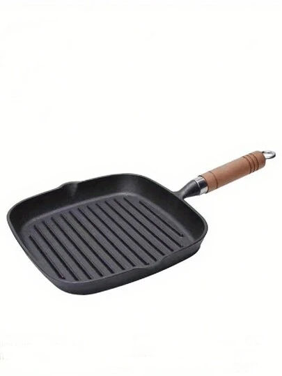 1pc Pre-seasoned Cast Iron Steak Frying Pan - Black - View 1