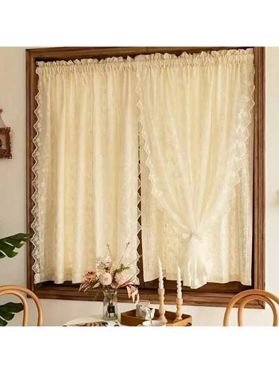 1pc Premium Double-Layer Daisy & Star Pattern Sheer Curtain, Fashion Design For Living Room & Bedroom, Minimalist Style Gifts Birthday Graduation - Yellow - View 1