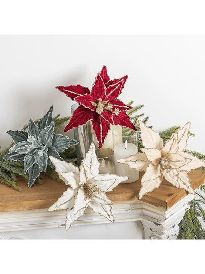 1pc Premium Red & Gold Sequin Velvet Artificial Flower Tree Decor Best Gifts Birthday Home Decor Christmas Decorations Room Decor Christmas Winter Christmas Decorations Home Christmas Gifts Christmas Decor - Multicolor - View 8