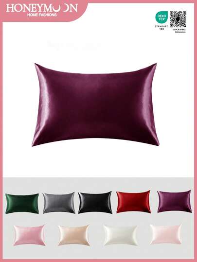 1pc Premium Satin Envelope Pillowcase, Soft & Breathable, Wrinkle-Resistant, Gentle On Hair & Skin, Improves Sleep Quality, No Pillow Insert Included, Purple, Oeko-Tex Certified - Purple - View 1