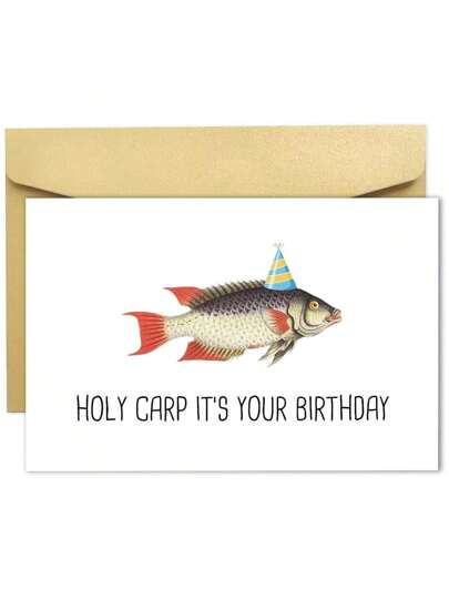 1pc Pun-Themed Birthday Greeting Card, Carp Design, Humorous Fishing Birthday Card, " Carp", Wishing You A Happy Birthday! Creative Birthday Gift For Friends, Husband, Boyfriend, Wife, Girlfriend, Family, Siblings, Parents, Partner, Coworkers, Classmates, Loved Ones, And Best Friends, Suitable For Various Occasions Like Valentine's Day, Back To School, Stationery. - Multicolor - View 1