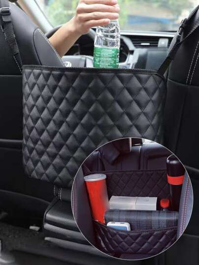 1pc Quilted Detail Car Storage Bag - Black - View 1