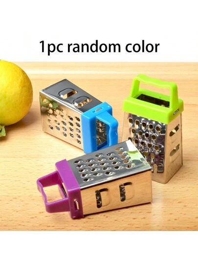 1pc Random Color Mini Four-Sided Cheese Grater & Vegetable Slicer, Stainless Steel Multifunctional Kitchen Accessory, Lemon Zester - Purple - View 1