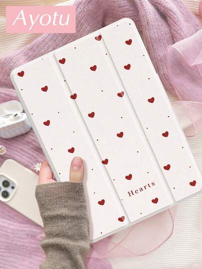 1pc Red Heart, Polka Dot Tablet Case & Kindle E-Book Case Compatible With IPad 10th Generation, IPad 11/Air 4th/Air 7th/9.7 Inches, Compatible With Samsung Galaxy Tab A9 Plus, Kindle (11th Generation-2024 Release)(6 Inch), Kindle Paperwhite 12th Gen 2024, Great Holiday Gift, Stylish And Simple Pattern. - Multicolor - View 1