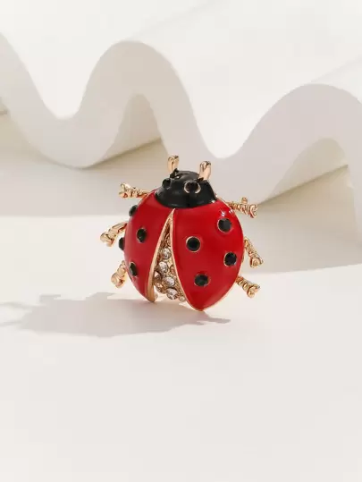 1pc Red Rhinestone Seven-Star Ladybug Brooch Pin, Cute Beetle Shirt Backpack Suit Accessory For Men And Women - Red - View 1