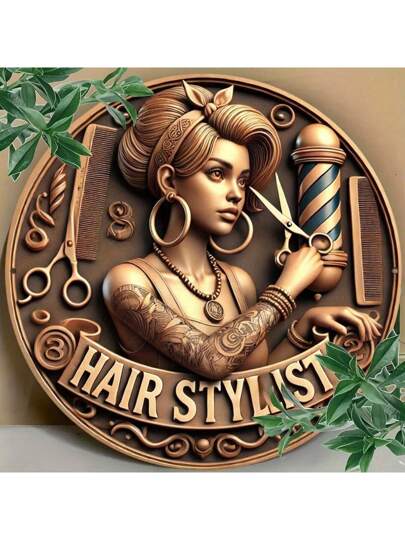 1pc Retro Barber Shop Sign - Suitable For Home, Barbershop, Cafe And Garage Decor | Indoor/Outdoor Wall Art With Flag Pole Design, Great For Room Decoration, Random Hole Position - Multicolor - View 7