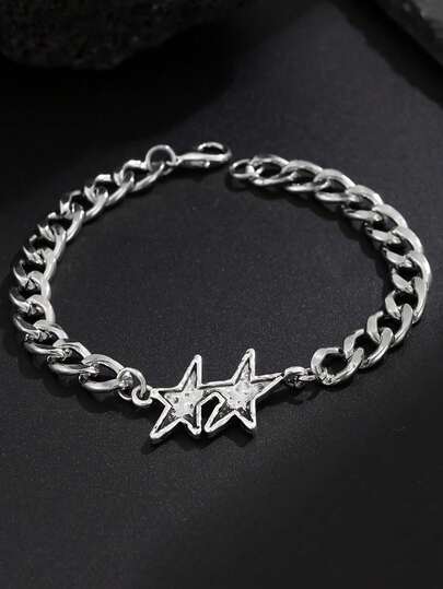 1pc Retro Double Star Bracelet, Unisex, Punk Rock Chic Luxury Accessory - Multicolor - View 1