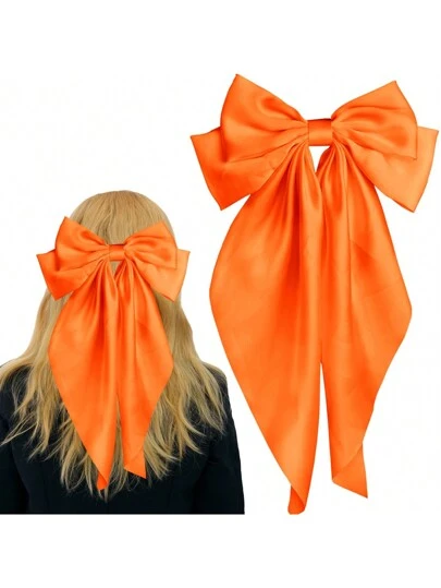 1pc Retro Satin Ribbon Long Tail Bow Elastic, Elegant Multi-Layered French Hair Accessory For Women, Suitable For Holiday And Daily Wear (Orange) Valentine's Day Valentines Hair Clips Claw Clips Hair Claws Hair Slide Hair Barrettes, School Stuff, College, Bows, Cute, Head Accessories, Hair Accessories For Women - Orange - View 1