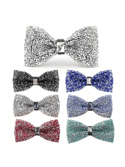 1pc Rhinestone Bow Ties For Men - Pre Tied Sequin Bowties Men With Adjustable Length, Jewel Bow Tie Casual Christmas - Multicolor - View 1