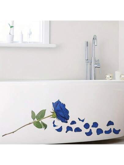 1pc Rose Flower Bathtub Sticker, Romantic Atmosphere, Waterproof Removable Bathroom Decorative Decal - Blue - View 1