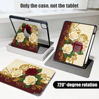 1pc Rose Pattern Flip Cover Desk Protective Case With Pen Slot, Compatible With IPad 10.9/10.2/Air 5th Gen/Pro 11/10th Gen/9.7/Air 2/IPad (7th Gen)/IPad (8th Gen)/IPad Air 4/5/Pad Pro 11/IPad 10.9" (2022), Smart Protective Cover, Suitable For IPad Air 13 (M3 2025)/Pad Air 11 (M3 2025)/Pad Air 11 (M3 2025)/Pad 11 (A16 2025), Compatible With Samsung S7/S8/S9/S6 Lite/S7+/S8+/S7FE/A7/A8/A9 - Multicolor - View 1