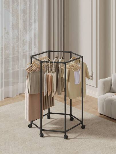 1pc Rotating Metal Clothes Hanger - Multifunctional Vertical Clothes Rack With Wheels, 360° Rotating Caster Hexagonal Drying Rack, 1.2m Height, Black And White Options, Large Capacity Clothing Storage And Drying Rack, Suitable For Bedroom, Balcony And Laundry Room - Multicolor - View 1