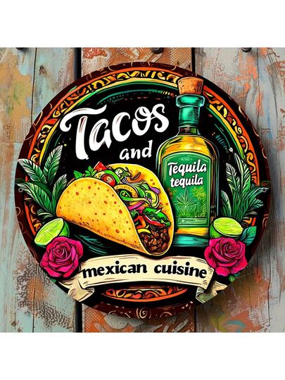 1pc Rustic Metal Mexican Food Wall Decor Plaque - Taco & Tequila Decoration, Vibrant Floral Pattern, Durable Kitchen Bar Cafe Art, Pre-Drilled Holes For Easy Hanging, Style & Size As Shown In Image - Multicolor - View 1