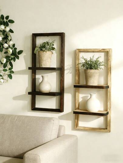 1pc Rustic Wooden Floating Shelf, Wall Mounted Storage Rack In Farmhouse Style For Bedroom, Kitchen, Bathroom, Small Wall Hanging Decorative Organizer - Multicolor - View 2