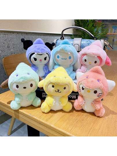 1pc Sanrio Dinosaur, Hello Kitty, Kuromi, My Melody, Pompompurin Plush Doll Keychain Doll, Backpack Charm, Christmas Tree Ornament, Holiday Gift - Multicolor - View 1