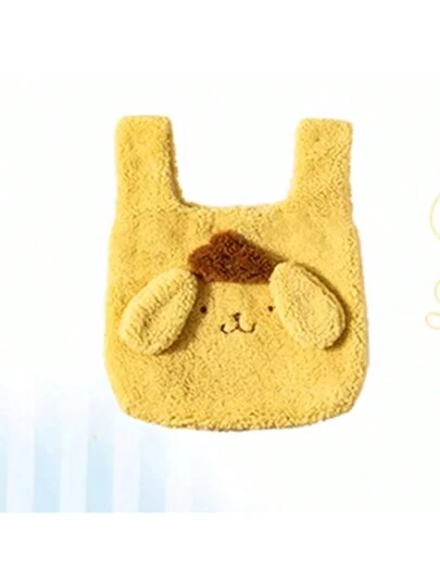 Miniso Sanrio Pompompurin Faux Lamb Fur Shopping Tote, Adorable Cartoon Print & Fluffy Texture, Foldable Design For Easy Storage, Suitable For Supermarket Trips, Gift Carrying & Kawaii-Themed Outings(1 PC) - Yellow - View 3