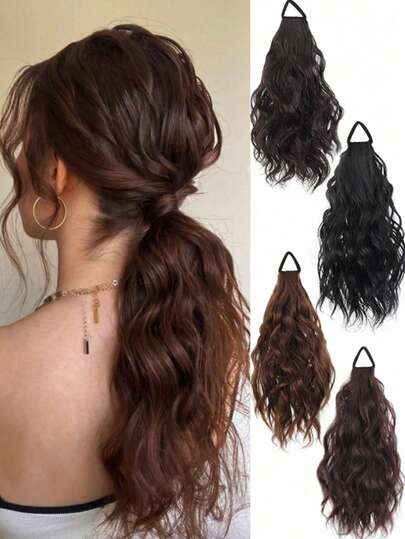 1pc/Set 12-Inch Wavy Ponytail Hair Scrunchie, Korean Layered Wavy Wig, Thick Non-Slip Elastic Band, Sweet Wig Hair Scrunchie Ponytail Holder, Suitable For Low Ponytail, Made Of Heat-Resistant Fiber Material, Hair Scrunchie Hair Tie - Multicolor - View 1