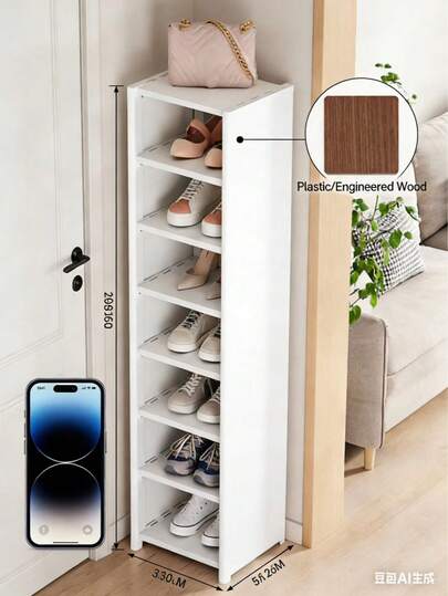 1pc Shoe Cabinet, Multipurpose Shoe Rack For Home Entrance, Dorm Room Storage Organizer, Modern Minimalist Design - White - View 14